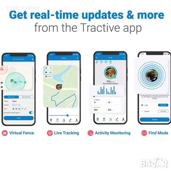 GPS тракерът за кучета ви позволява да виждате местоположението на вашето куче отвсякъде и по всяко време. Проследявайте косматия си приятел в реално време без ограничение на разстоянието. Достъп до историята на местоположението на вашия смартфон и се насладете на повече забавни функции заедно с вашия домашен любимец. След като изберете абонаментен план, Tractive GPS Dog ще намери вашия домашен любимец почти навсякъде по света, използвайки най-добрата налична мобилна мрежа. Просто прикрепете лекия, водоустойчив тракер към нашийника на вашето куче и започнете да проследявате вашия домашен любимец с помощта на безплатното приложение Tractive GPS. Определено е време за нови приключения, така че вземете едно сега!