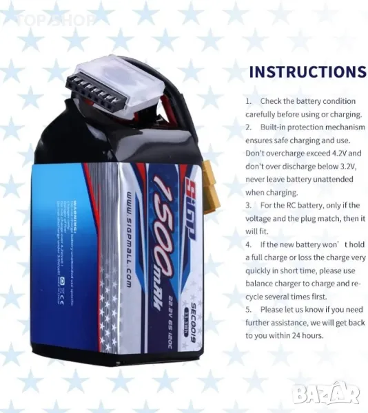 Приложение: SIGP 1500 mAh 22,2 V 6S Lipo батерия, подходяща за RC FPV хеликоптер, самолет, дрон, квадрокоптер, състезателно хоби (само ако напрежението, размерите и щепселите съвпадат, тогава става).