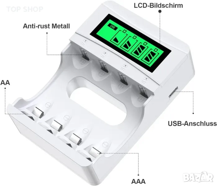LCD бяло зарядно устройство за акумулаторни батерии за NiMH