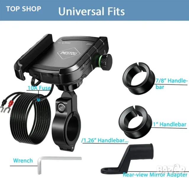 Две лесни инсталации: Подходящи за кормило с диаметър 7/8", 1", 1-1/4" за вашия мотоциклет, ATV, мотопеди, снегомобил. Може да се монтира и върху основата на огледалото за обратно виждане чрез адаптера в опаковката.