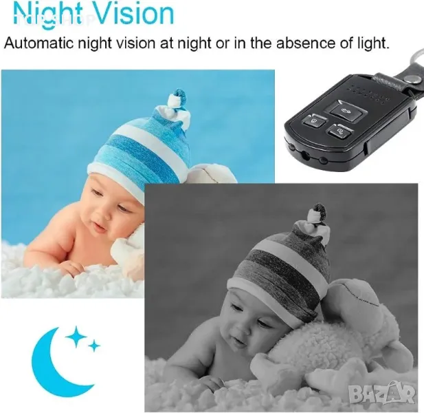 диктофон. Камерата m също е лесен за употреба шпионски аудио рекордер. Неговият уникален дизайн ви позволява да го носите на конференции или преговори всеки ден, така че една-единствена дума да ви убягва.Нашата камера с ключодържател с подобрено откриване на движение, след активиране на този режим, тя ще записва само при откриване на движение, което улеснява спестяването на място за съхранение в сравнение с други мини камери.Функцията за нощно виждане е една от важните характеристики на тази камера за автомобилен ключ, с помощта на инфрачервени светлини, прикрепени към камерата, тя може да записва ясно видео дори през нощта или при условия на слаба светлина.Многофункционална акумулаторна камера. Позволява ви да записвате видеоклипове, докато ги зареждате с променливотоков адаптер или захранване, да правите снимки, когато пожелаете, и тази преносима камера поддържа разширяване на паметта до 32 GB в максимум (не е включена).