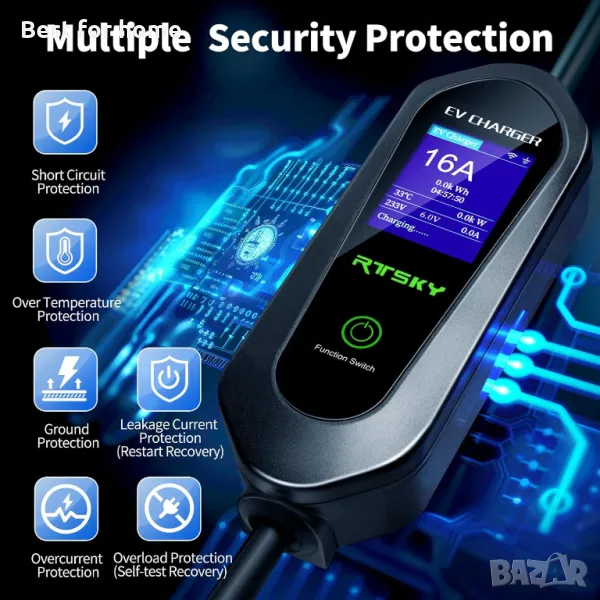 ИНТЕРАКТИВЕН ЦИФРОВ ДИСПЛЕЙ Нашият кабел за зареждане има удобен за потребителя цифров дисплей, който показва информация за състоянието на зареждане, напрежение, ампераж и други в реално време, като ви дава прецизен контрол върху процеса на зареждане.