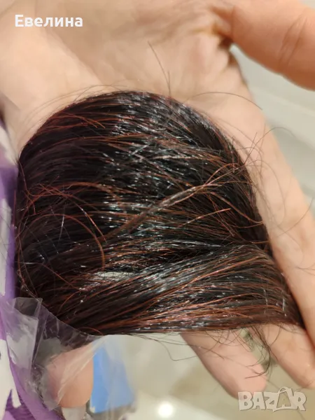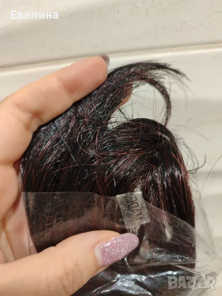 Предварително подготвена коса за опашки или друг вид екстеншън в интересен цвят - черно с кестеняво-червеникави фини кичури.