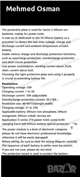 BMS 5S 35A, снимка 1 - Друга електроника - 48736519 BMS 5S 35A, снимка 2 - Друга електроника - 48736519 BMS 5S 35A, снимка 3 - Друга електроника - 48736519 1/3