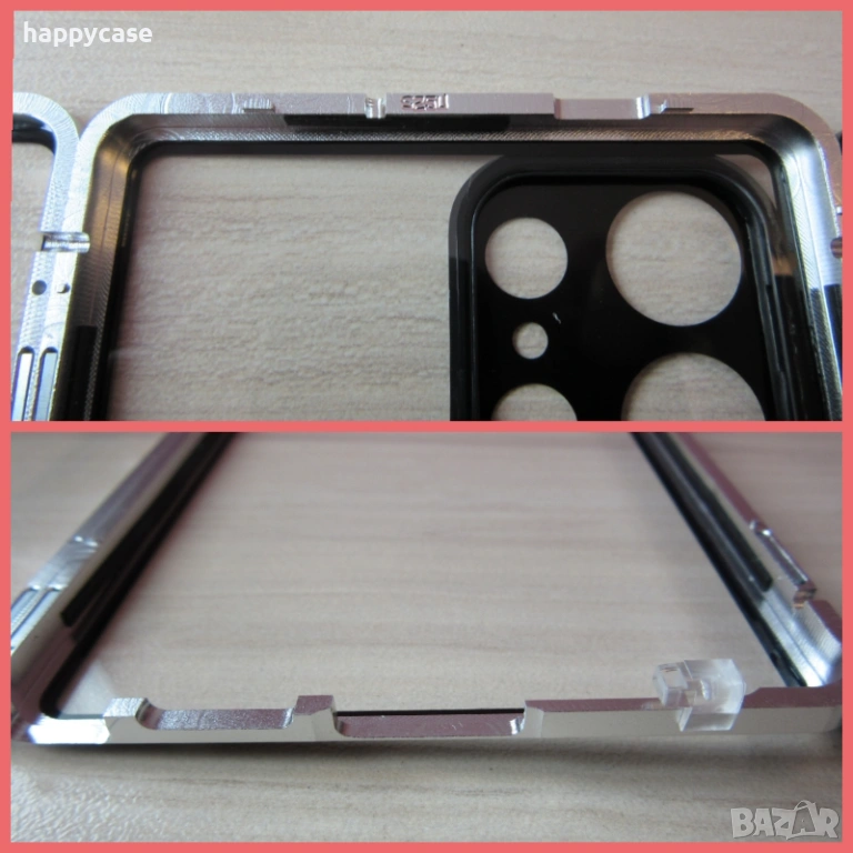 > Състой се от горна и долна алуминиеви рамки които обикалят телефона от всички страни. Двете рамки се свързват с магнити и могат да се отделят една от друга.