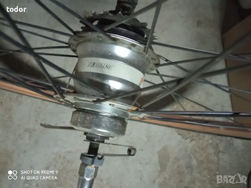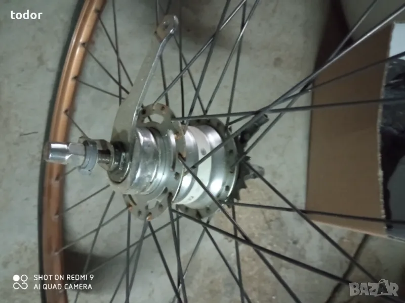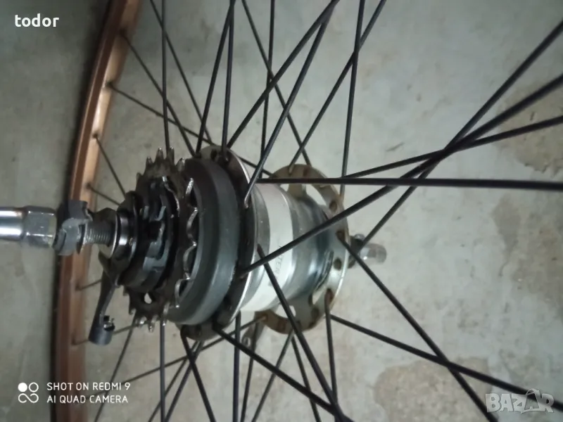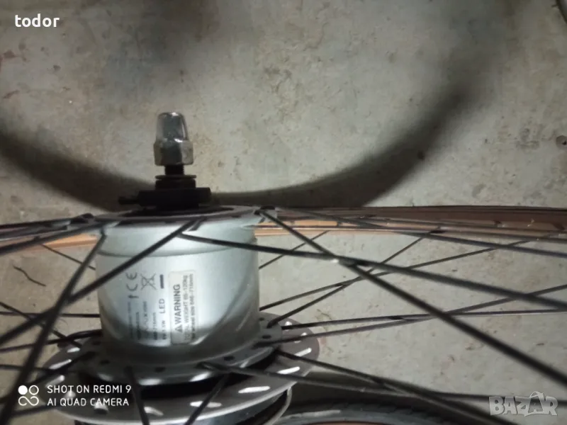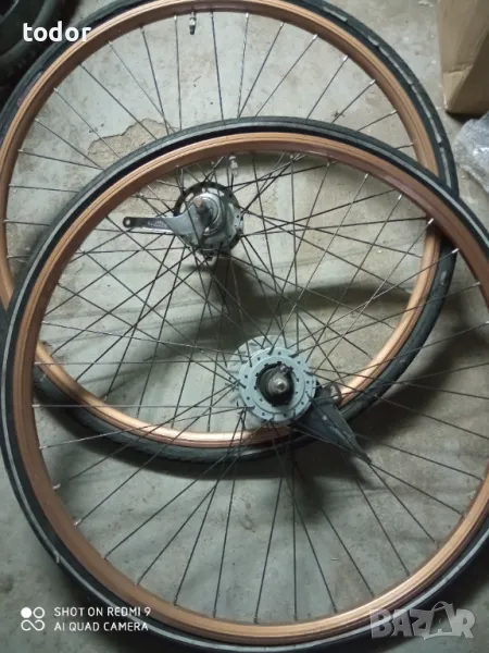 комплект капли идеално състояние ,предна с динамо главина и роторна спирачка , задна с контра и седем вътрешни скорости ,без гумите .