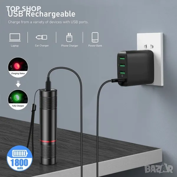 Акумулаторното фенерче Blukar е издръжливо и преносимо с четири режима на светене. Зарежда се през USB с батерия, която може да издържи до 16 часа при нормална употреба. Дизайнът му с възможност за мащабиране регулира фокуса според нуждите и комплектът включва 1 USB кабел. Може да се използва широко за ежедневно осветление, спешни случаи или спорт на открито.