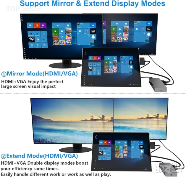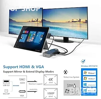 ✔️【Гъвкавост на двоен дисплей Surface Pro Hub】Режими на двоен дисплей (HDMI+VGA) Увеличете ефективността си с 2 пъти, 4K резолюции на HDMI порта до 3840 x 2160 при 30Hz VGA портът поддържа разделителни способности на дисплея до 1920 x 1080@60Hz. Можете да се насладите на филми със семейството си на по-голям екран или да направите ярка презентация на среща. Можете да използвате HDMI и VGA изходи едновременно, за да задоволи работата на няколко устройства.