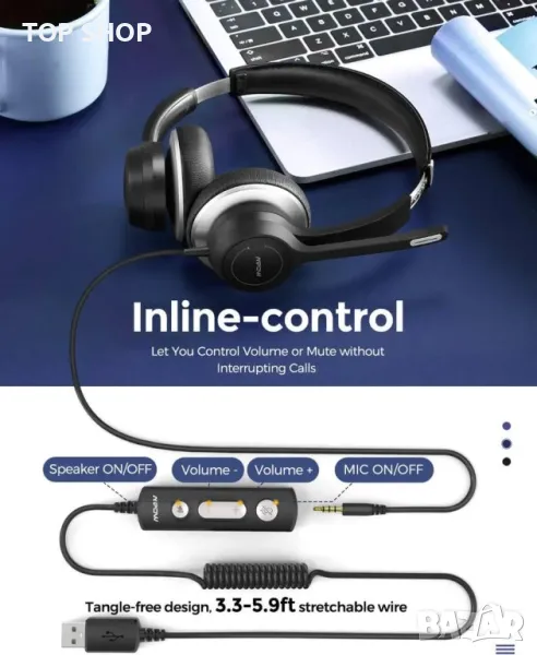 ЦЯЛОТО СЪВМЕСТИМОСТ: USB и 3,5 mm опции за свързване ви позволяват да работите на различни устройства. Съвместим с Windows 2000/7/8/10/XP/Vista, Mac OS X, iOS, Android, Tablet PC. Забележка: Моля, изберете USB връзка, ако искате да заглушите функцията.