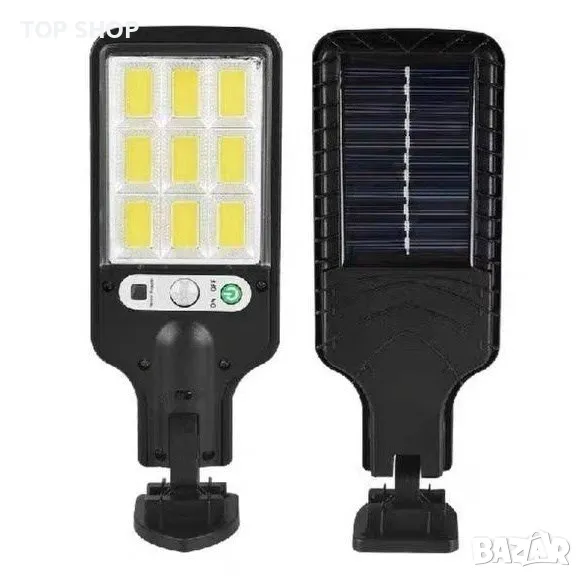 Нов модел висококачествена, много мощна LED лампа със сензор за движение на промоционална цена! Лампата е с вградени мощни COB светодиоди. Осветява безпроблемно Вашата градина, барбекю, тераса и други. Зарежда се чрез вграден соларен панел през деня и работи през нощта. С три режима на работа. В комплекта има включена стойка за монтаж с регулиране на ъгъла.