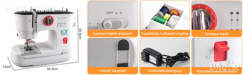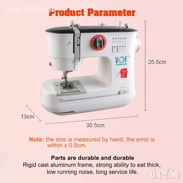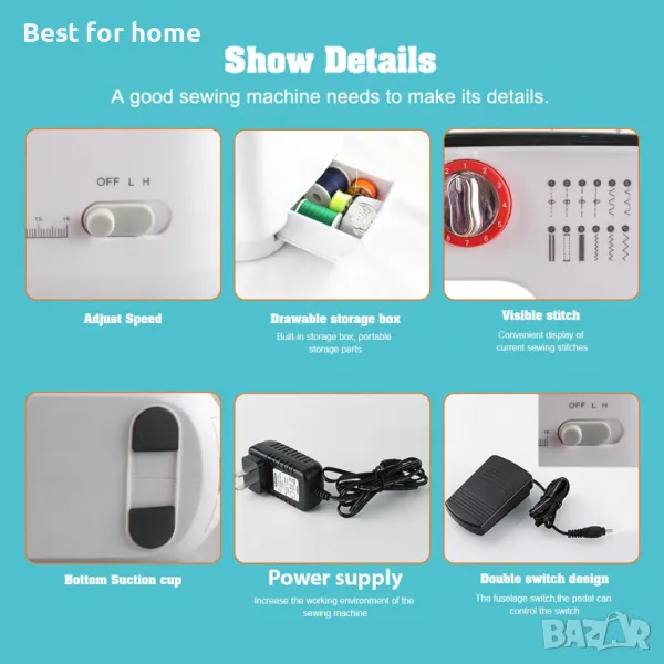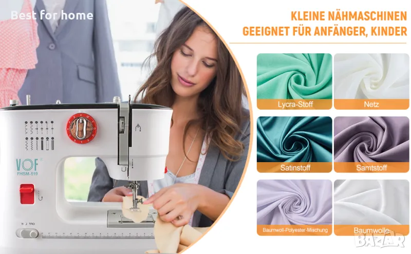 Той е лесен за използване и може да шие текстил като дрехи, калъфки за възглавници, чаршафи и др. Перфектен за начинаещи и ежедневни шивашки проекти.