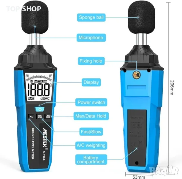 Измервател на нивото на шума MESTEK Цифров измервател → Обява 48737841