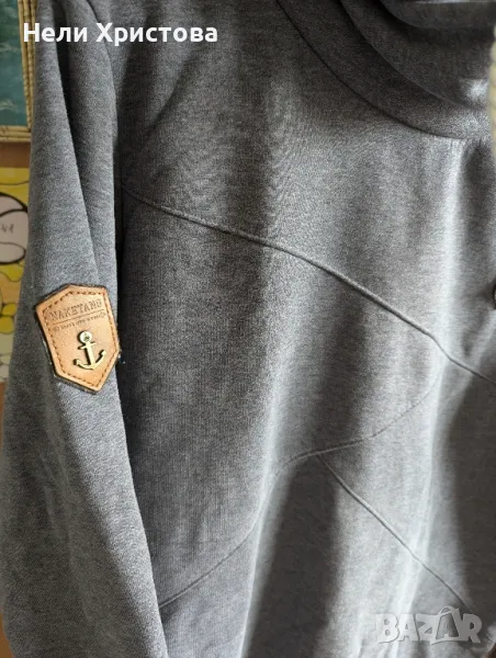 Мъжки суичър, сив на цвят, размер l, дължина 70 см, ширина 118 см, дължина на ръкава 73 см. Без следи от употреба.