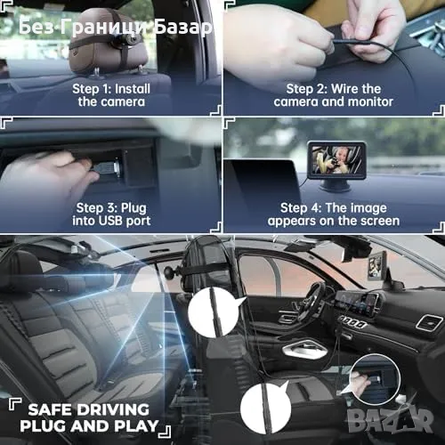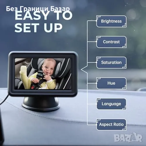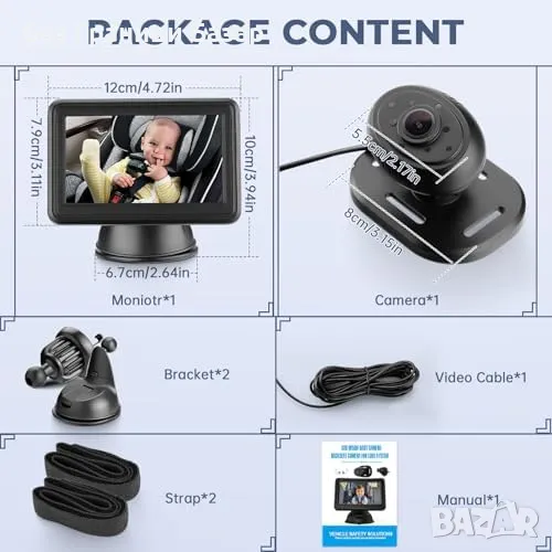 Нова Сигурна камера за бебе задна седалка с HD дисплей и лесен монтаж