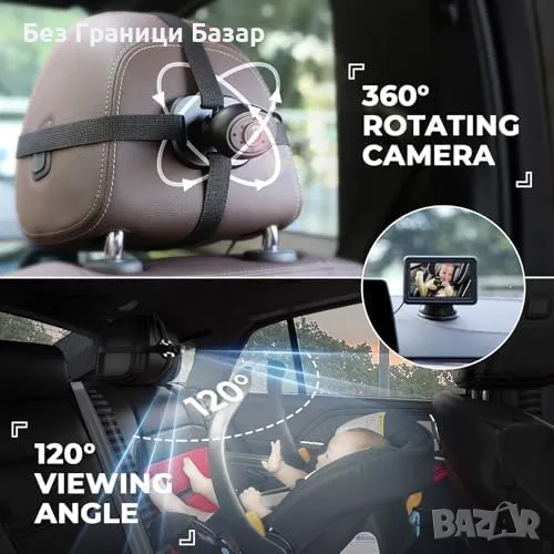 Камера с HD 1080P дисплей: 4.3-инчов екран за ясно изображение на вашето бебе по време на път.