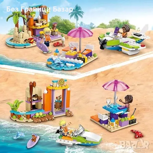 2-в-1 конструктор с плаж и пътешествие за креативна игра.