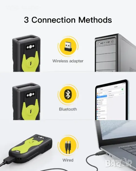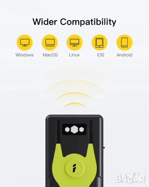 С вградения Bluetooth 5.0 модул , този Bluetooth скенер може да бъде свързан с вашия мобилен телефон, таблет и компютър. Работи с Android, iOS, Windows, Mac OS, Linux, Unix и Chrome OS.