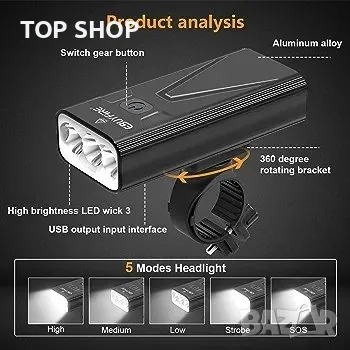 【ТРИ РЕЖИМА НА СВЕТЕНЕ И ГЪВНОСТ】 Три режима на високо, ниско, бързо мигане, свободни за превключване според вашите нужди. Фарът има и функция за фенерче, която може да се използва в различни сцени, като колоездене, къмпинг, нощен риболов, ходене
