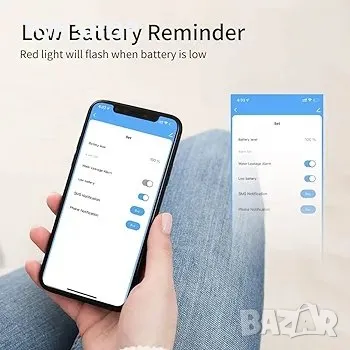 Захранване от батерия и напомняне за изтощена батерия: WiFi сензорът за вода се захранва от 2 AAA батерии (включени), батерията издържа повече от половин година и можете да видите мощността на батерията в приложението. Когато зарядът на батерията е под 5 процента, приложението ще изпрати известието.