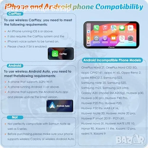 Интелигентна безжична връзка: Поддръжка на CarPlay и Android Auto за навигация, музика и обаждания чрез гласов контрол.