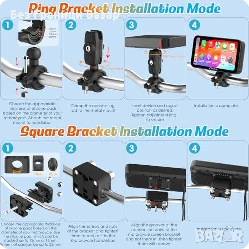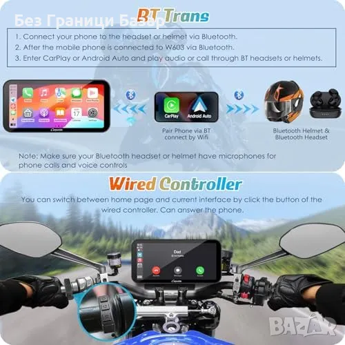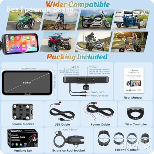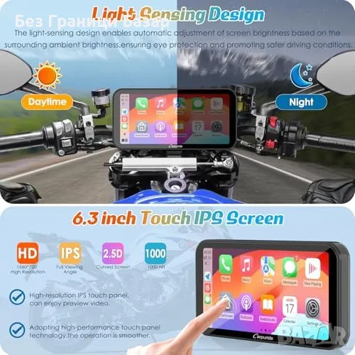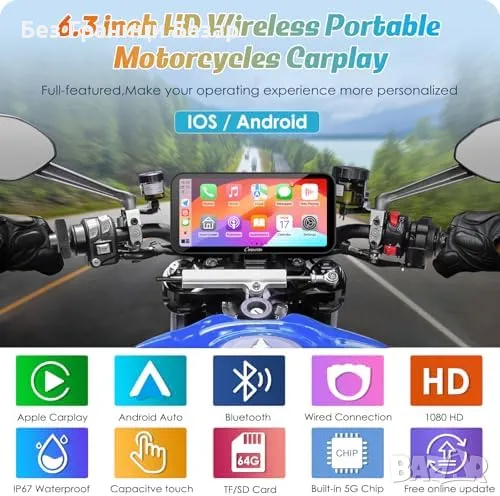 Нов Безжичен CarPlay и GPS за Мотоциклети, Водоустойчив 6.3" Дисплей