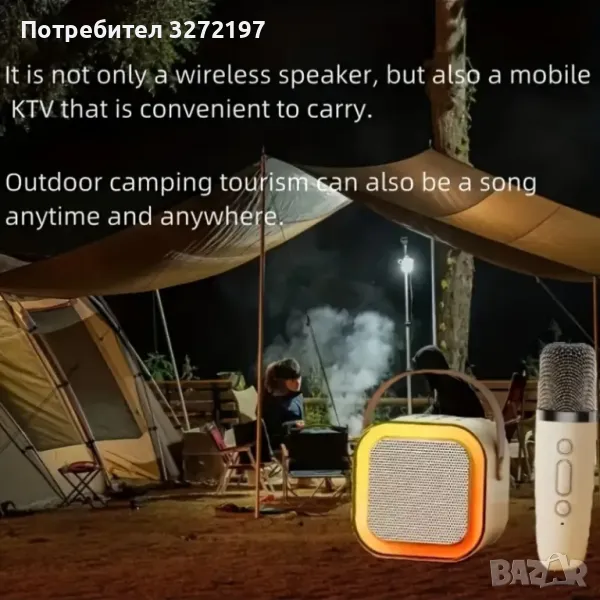 K12 Високочествен караоке комплект с два безжични микрофона и LED тонколона,преносима,обхват до 10 м.,
