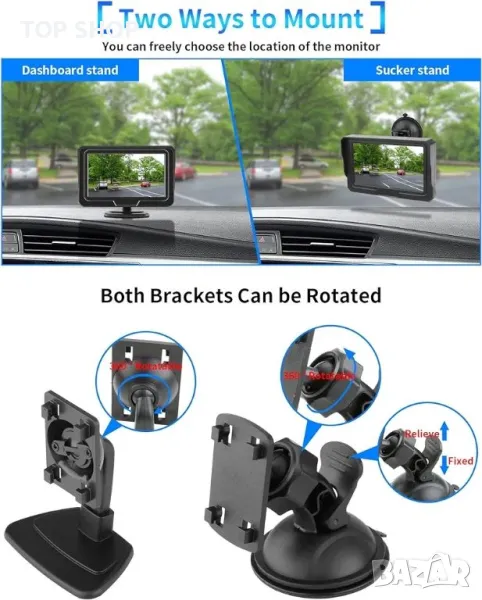 【Лесна инсталация с един проводник】 Инсталацията е лесна! Без сложно и многобройно окабеляване, само един кабел завършва връзката между монитора и камерата за заден ход. И камерата за задно виждане, и дисплея се захранват само от запалката. Дори и да нямате професионални познания, комплектът камера за заден ход може лесно да се инсталира и използва. В сравнение с безжичните системи, кабелните системи нямат забавяне на изображението или проблеми със сигнала.