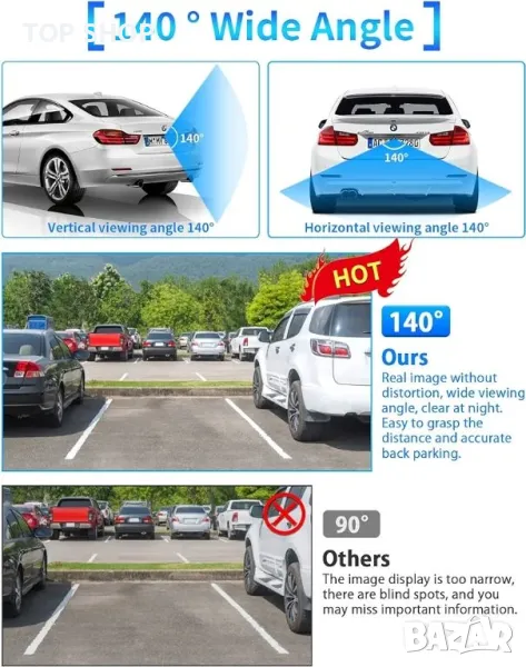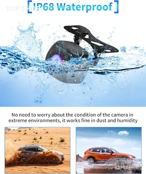 【Водоустойчивост IP68 и перфектен широк ъгъл от 140°】 Водоустойчивост IP68, устойчивост на прах и пясък в съответствие с международните стандарти. С процеса на пълно пълнене с лепило може да се избегне проникването на водни пари дори при силен дъжд. Никога не се притеснявайте за навлизане на вода във фотоапарата по време на дъждовния сезон. Отлична водоустойчивост и устойчивост на удар, ефективно удължаваща живота на камерата за задно виждане на автомобила. С перфектен 140° широкоъгълен, без ефект на изкривяване, ефективно елиминиране на слепите петна, по-близо до действителната сцена.