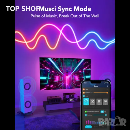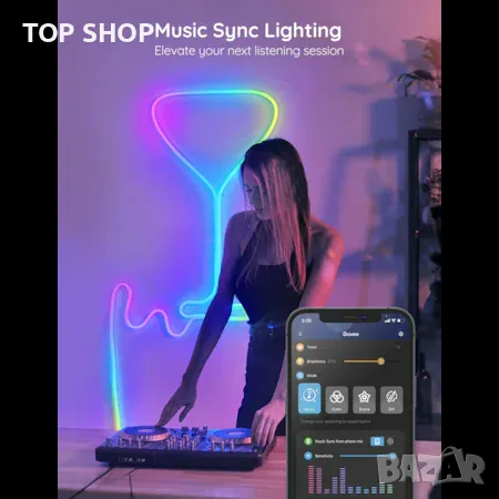 Лентата има 64 режима на динамична сцена, от които да избирате. Можете да настроите таймер за автоматично включване/изключване според вашите нужди, създавайки приятно и полезно осветление.