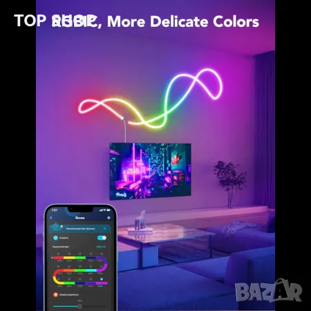 Открийте новата Neon led лента. Това е като гъвкава струна, която ви дава висококачествена RGBIC светлина. С издръжлив силиконов екстериор и ярка дифузна светлина, която може да се огъва около ъглите и в различни форми.