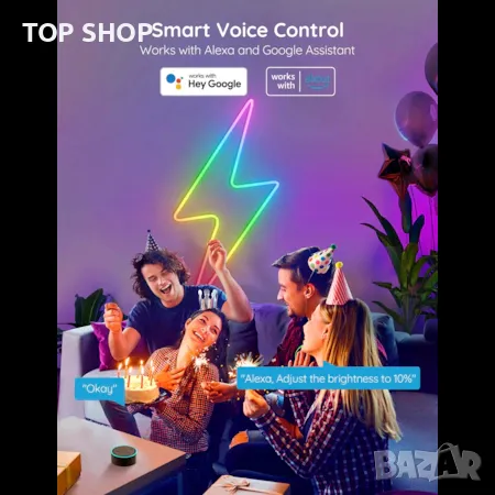 Свържете вашата лента с Alexa или Google Assistant за достъп до функцията за интелигентен гласов контрол. Получете достъп със свободни ръце до различни функции на приложението Govee Home, като например музикален режим, където вашето осветление ще се синхронизира с музика.