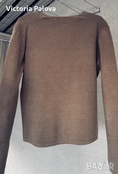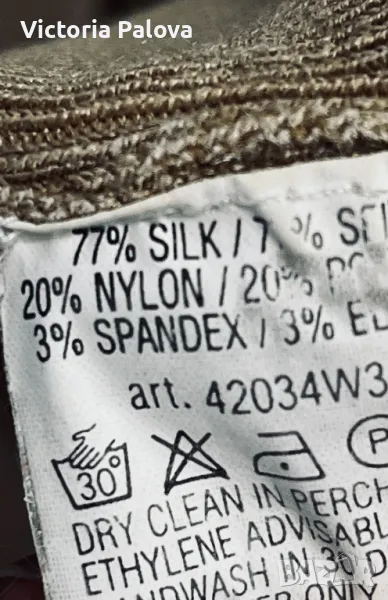 Жилетката е от 77% плътна коприна, държи форма, не се развлачва, много красив актуален цвят ( Mocha Mousse, цвят на годината, “емоционално меко кафяво”), малки седефени копчета. Рамо - 44см, ГО - 52см, дължина - 56см, ръкав - 58см.