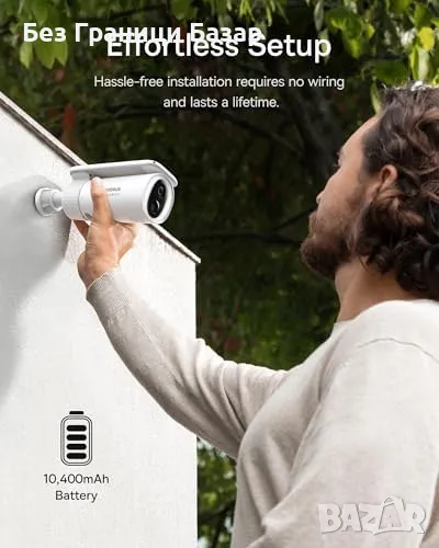 2K резолюция и цветно нощно виждане: 145° зрително поле, 8x цифрово увеличение и 400lm прожектор за ясни видеозаписи денем и нощем.
