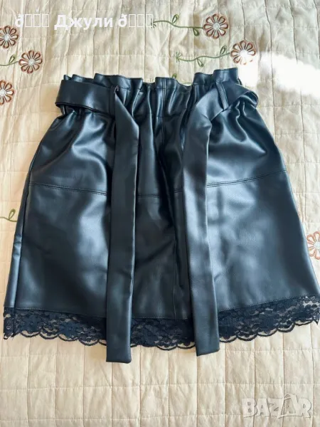 Уникална кожена пола с памучна дантела отдолу