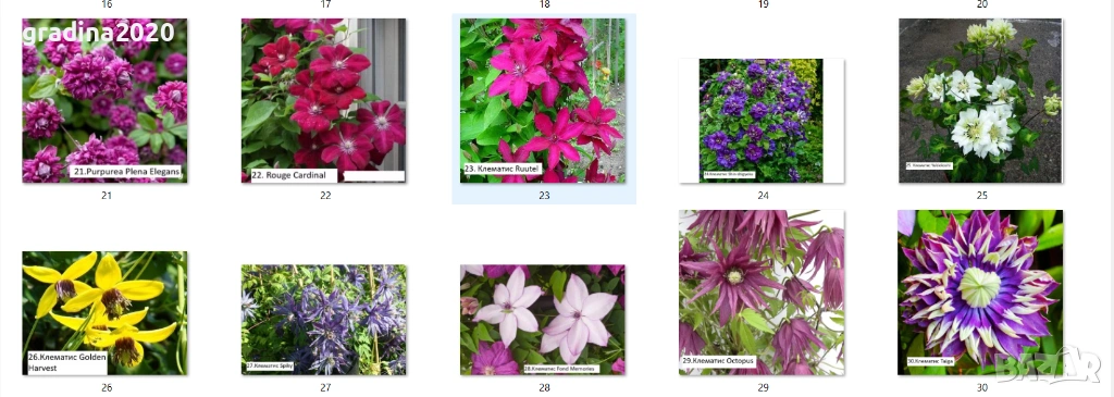 Клематис налични 33 вида → Обява 48740865