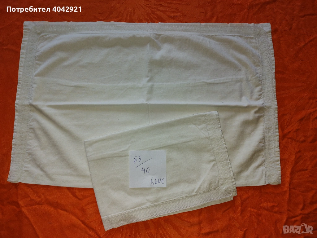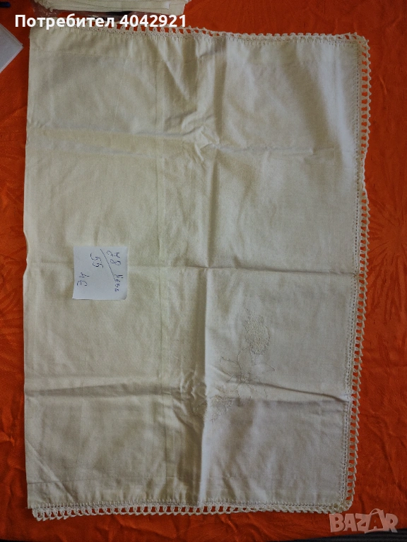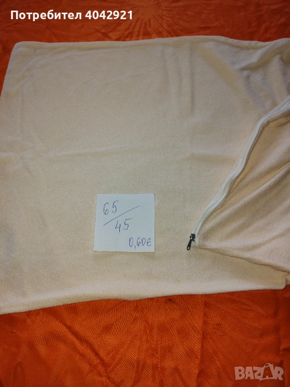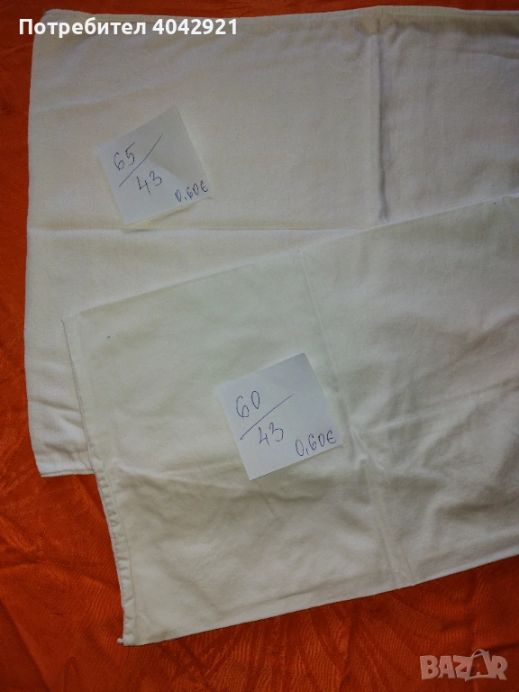 Материал памук/хасе,американ/ от соца.Размер 65/45 от първата снимка.Има 6 броя.Калъфки с дантели два броя.Цена за брой 0,60€.Хавлиена калъфка с цип един брой.Цена и размер на хартийката.Две калъфки памучен сатен.На хартийката размер и цена.Една калъфка нова с бродерия и дантела на една кука . Размер и цена на хартийката.