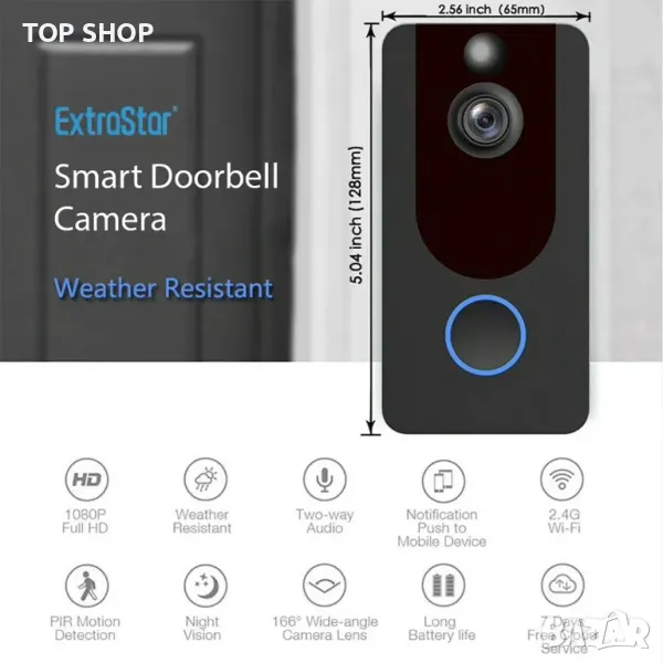 Пълно 1080p HD видео възпроизвеждане Безжична връзка Контрол на приложението и известия за предупреждение за сигурност Устойчив на атмосферни влияния PIR детекция на движение IR нощно виждане Двупосочно аудио Защита с парола Изключително дълъг живот на батерията Поддържайте няколко акаунта едновременно