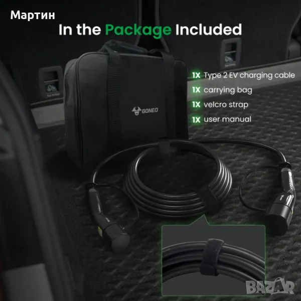Органайзер в багажника: Кабелът се доставя с издръжлива чанта за носене, велкро лента, за да направи съхранението на кабела за зареждане на електрически автомобил по-удобно и лесно