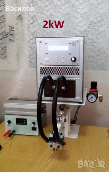 Работещи с пневматично притискане на детайлите, с водно охлаждане, с тиристорно или симисторно управление на трансформатора.