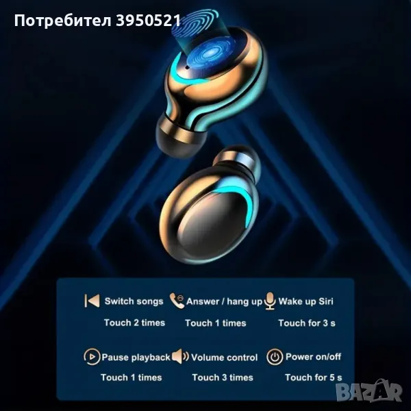слушалки, които можете да управлявате с едно докосване и които ви предоставят перфектен звук и невероятно 9D звуково изживяване. С уникална кутийка за зареждане Power bank 3300mAh и LED индикация за зареждането. Слушалките позволяват слушането музика по всяко време и са със свръх бърза връзка чрез 5.0 версията на Bluetooth. Те са перфектни за всеки меломан, спортист или често разговарящ по телефона човек, както и за всички, които са ценители на качеството и удобството.