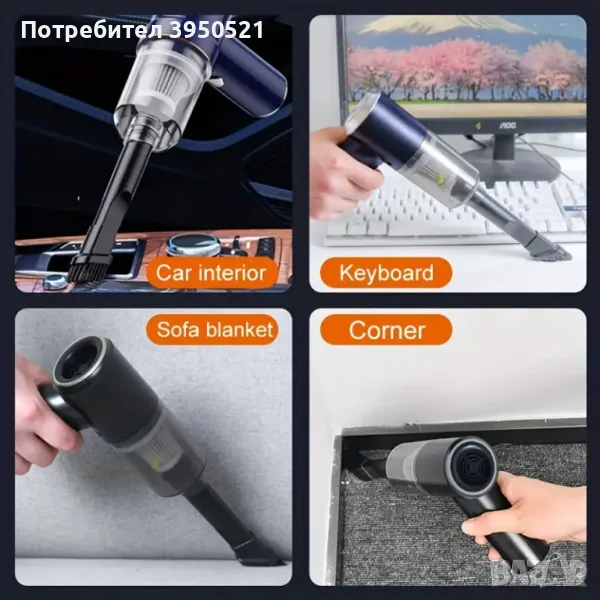 Безжична прахосмукачка за кола - автомобил, дома 4000 mAh, с издухване