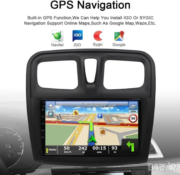 Поддържа всички навигации, съвместими с Android: IGO, WAZE, GOOGLE Maps и други