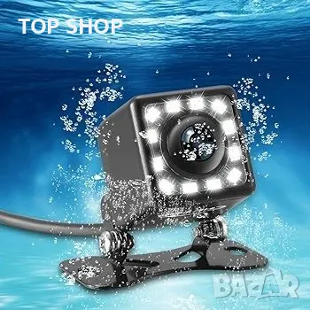 IP67 водоустойчив, с висока разделителна способност и пълен цвят (648X488, пиксел / NTSC TV стандарт), 12 LED лампи, оборудвани с широк визуален ъгъл и обръщаща водеща линия, което позволява ясно показване на изображения през нощта