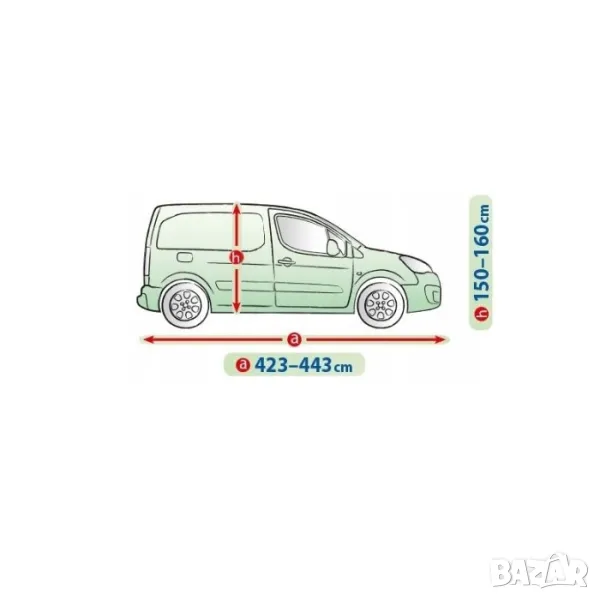 Покривалото е изработено от 4-слоен материал. Предпазва автомобилa от вредните влияния на околната среда през цялата година. През зимния сезон предотвратява отлагането