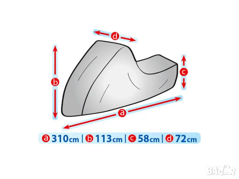 Покритието не се намокря, като в същото време отвежда водните пари навън, предпазвайки колата от ръжда и плесен. Подходящо както за краткотрайна, така и за продължителна употреба. Покривалото може да се пере на ръка на 40 градуса.