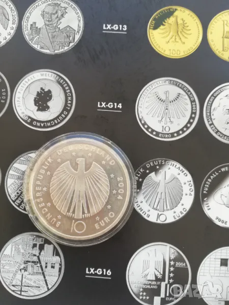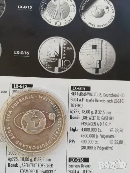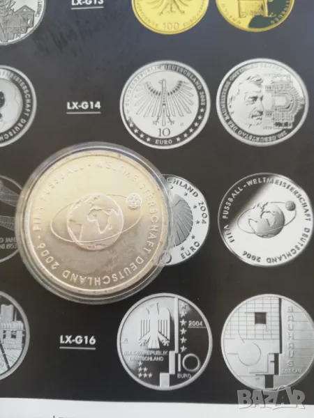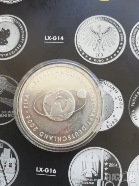 юбилейна монета 10 евро сребърна/925/-18 грама нова в капсула от 2004 г. издадена по случай световното по футбол в Германия. цена 60 евро. изпращам само по еконт.