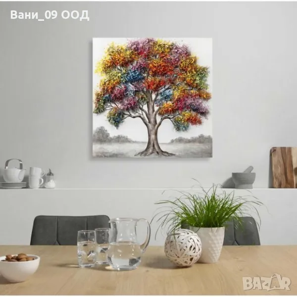 Огромнс картина-канава "Шареното дърво" с внушителните размер 100х100см