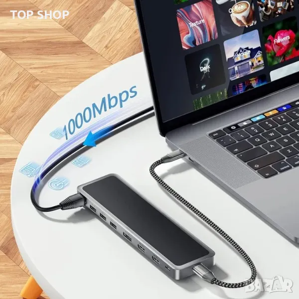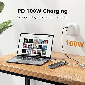 12 в 1 USB C хъб, USB-C докинг станция за лаптоп, троен дисплей тип C адаптер,