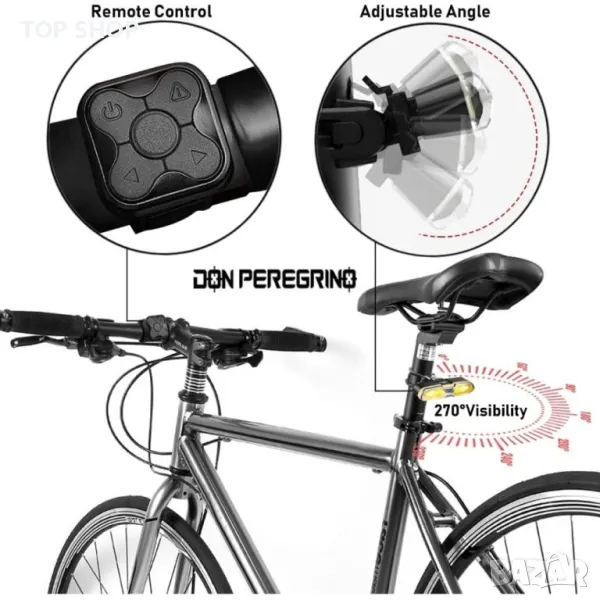 Нова задна светлина за велосипед --- ?красив: елегантен рационализиран дизайн от солиден материал, компактен размер – 30g, 8,8cm. ?мощен: лабораторно тествана мощност от 100 лумена с 38 COB светодиода, даващи ви 270° ъгъл на лъча и 492 фута видимост за безопасност. ?основно: ipx-5 водоустойчива и USB акумулаторна вградена литиева батерия. ?Мултифункционална 3 в 1: Това е не само задна светлина за велосипед с режими на постоянен/мигащ режим, но и сигнална светлина за велосипед и стоп светлина, регулирани от безжично дистанционно управление.