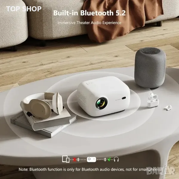 Мини проектор с WiFi и Bluetooth, 4K 1080P преносим проектор, 18000 лумена проектор → Обява 48747732
